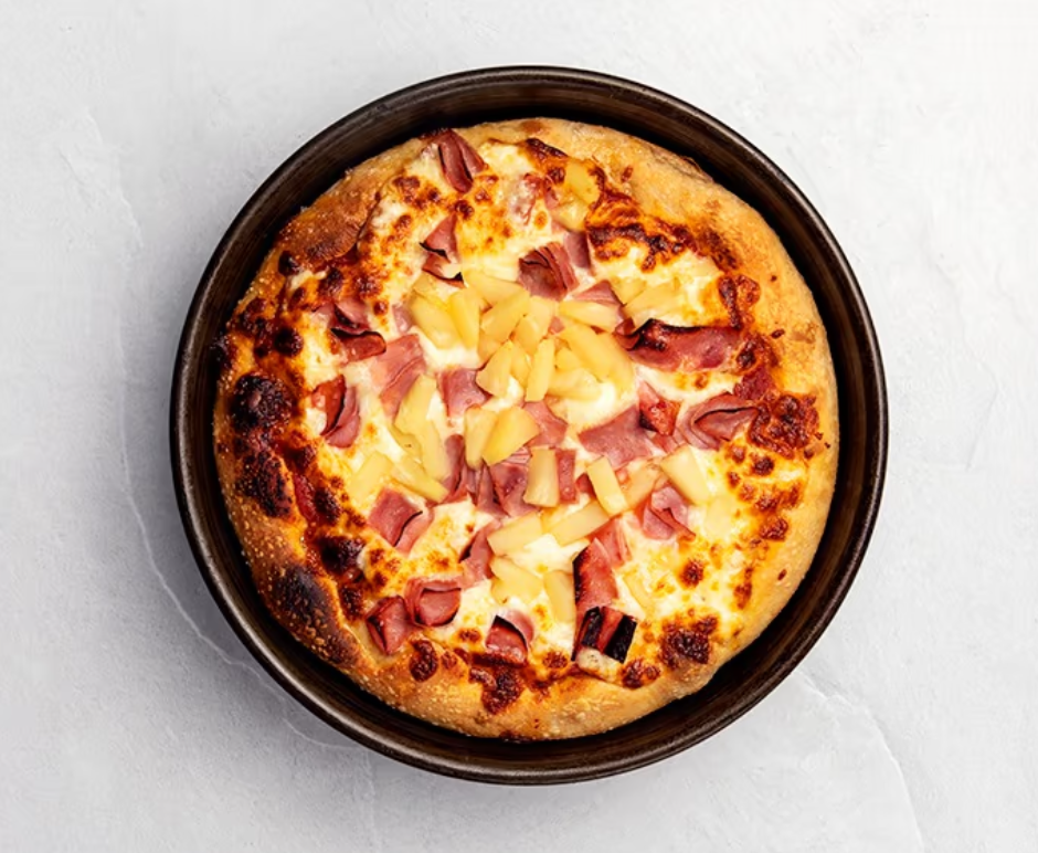 Ingredienser: Tomatsås, Ost, Mozzarella, Skinka, Ananas, Vetemjöl, Jäst, Vatten, Salt, Olja