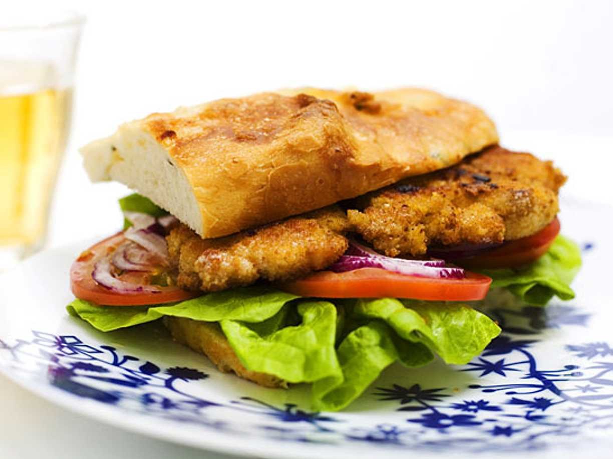 Krispig och gyllene schnitzel serveras med valfri bearnaisesås