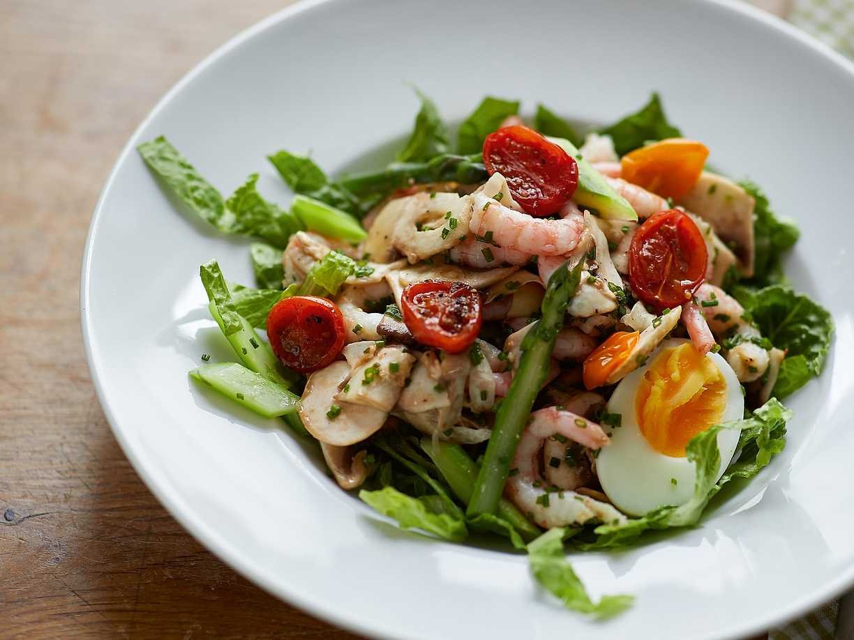 Ingredienser: Räkor, Majs, Paprika, Citron, Isbergssallad, Tomater, Gurka, Valfri sås, Bröd